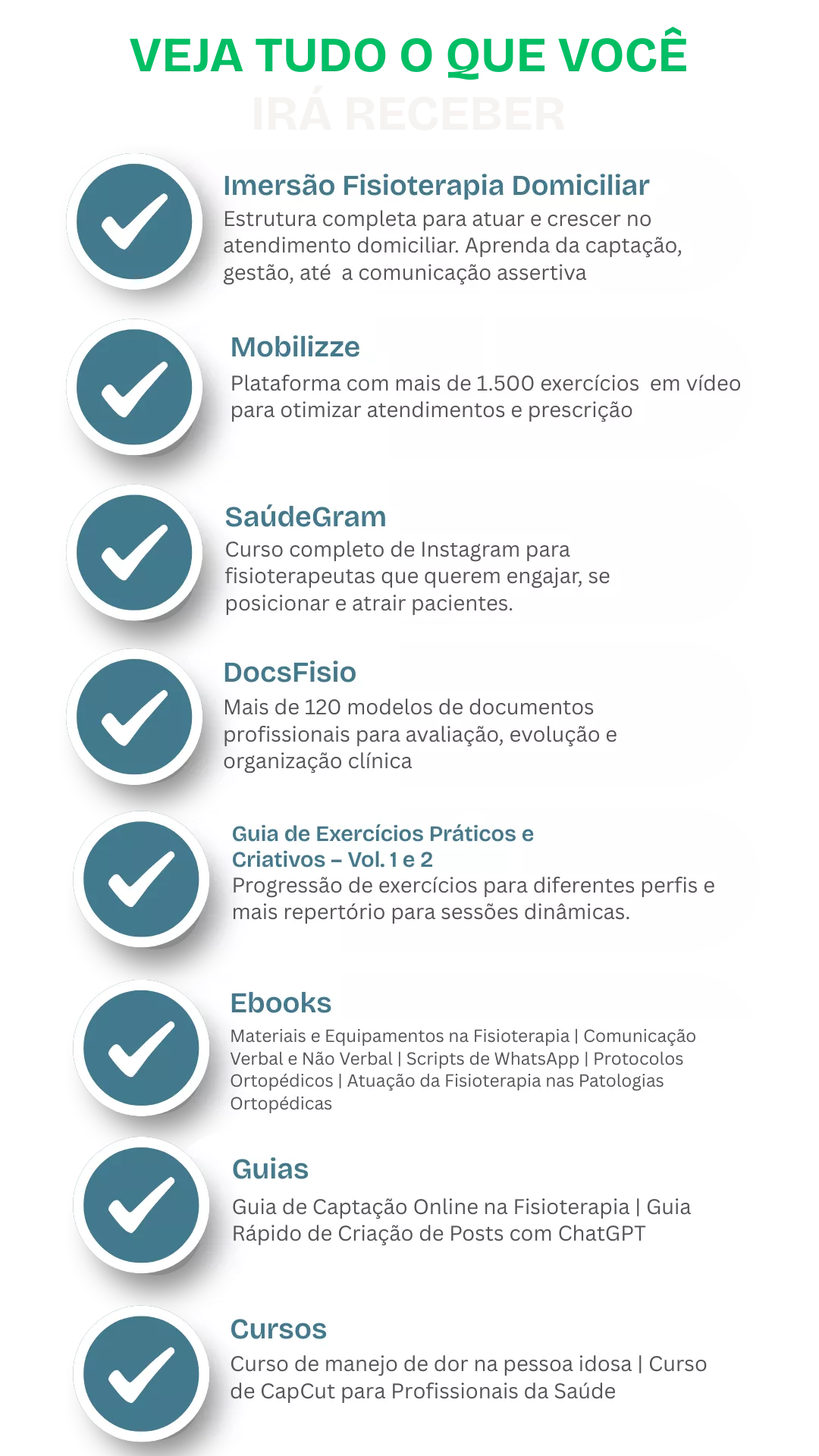Aprenda a atender melhor, se posicionar, captar pacientes, vender seus serviços e evoluir na fisioterapia com um pacote completo de ferramentas práticas, técnicas e estratégicas
